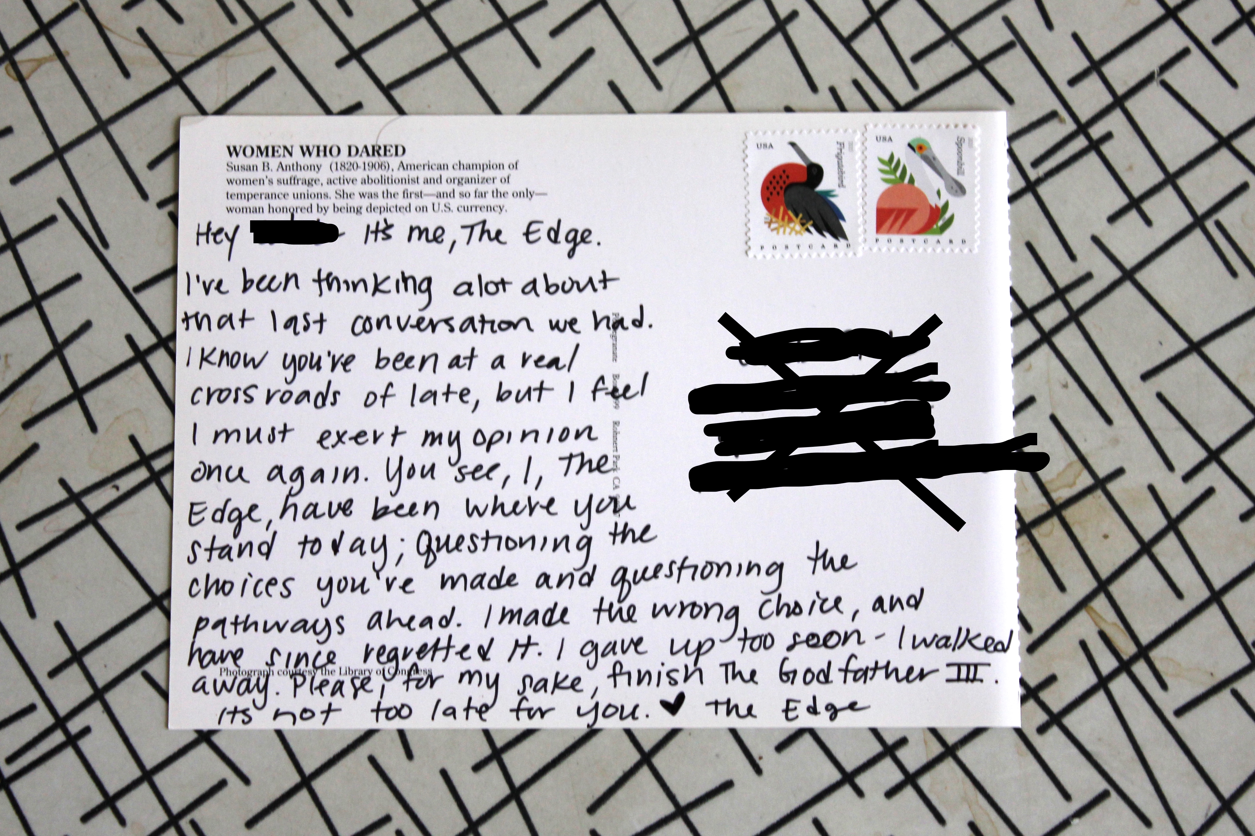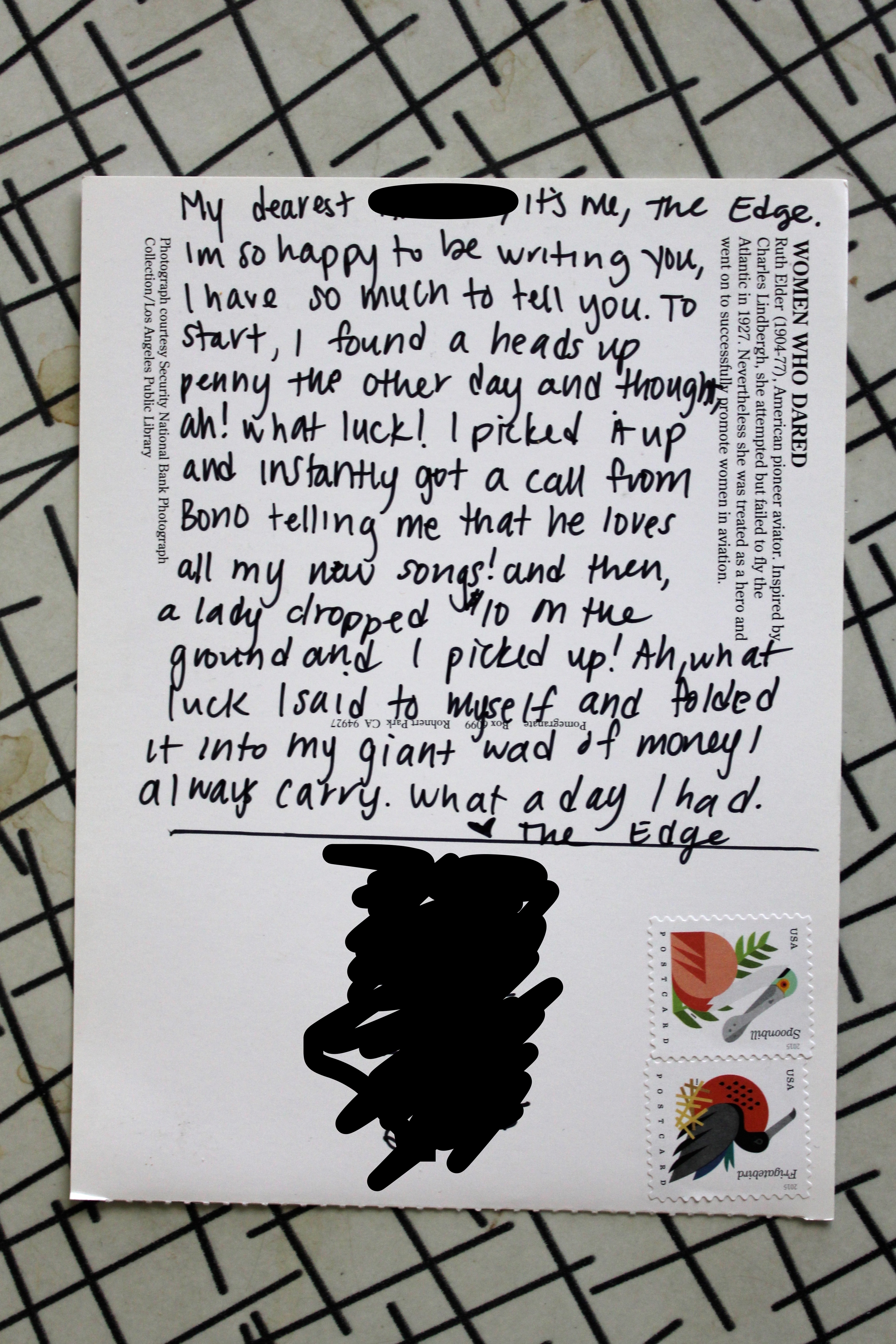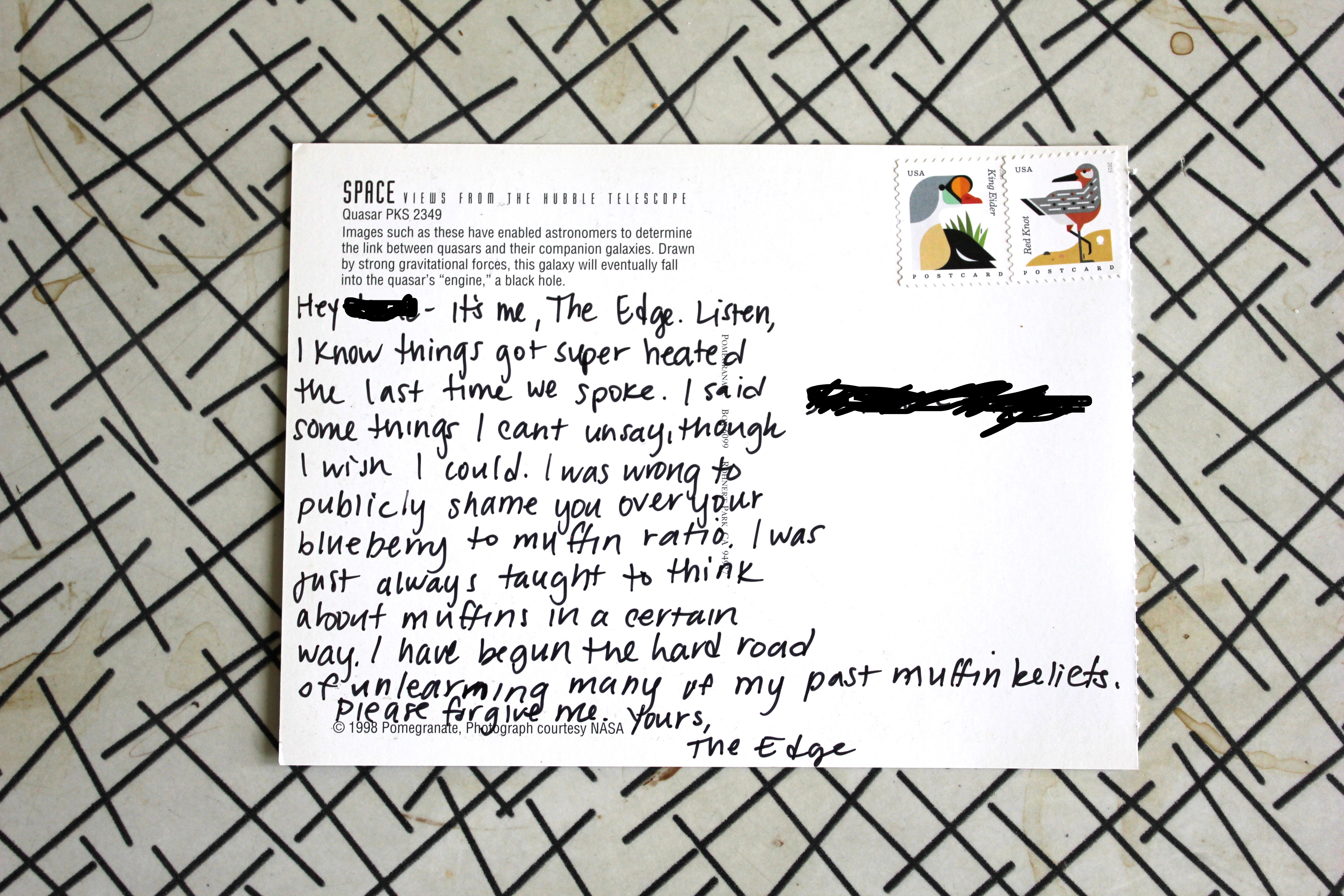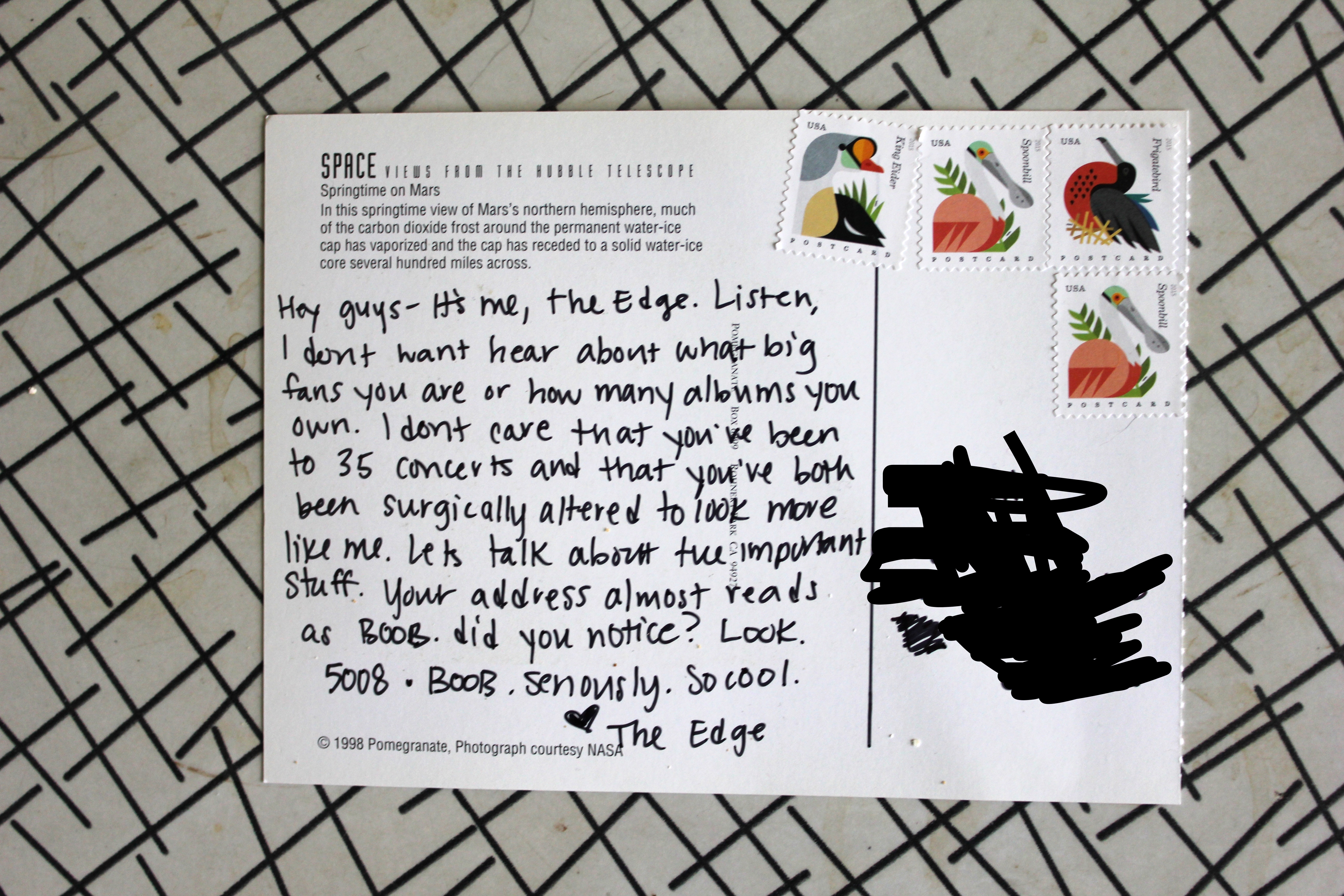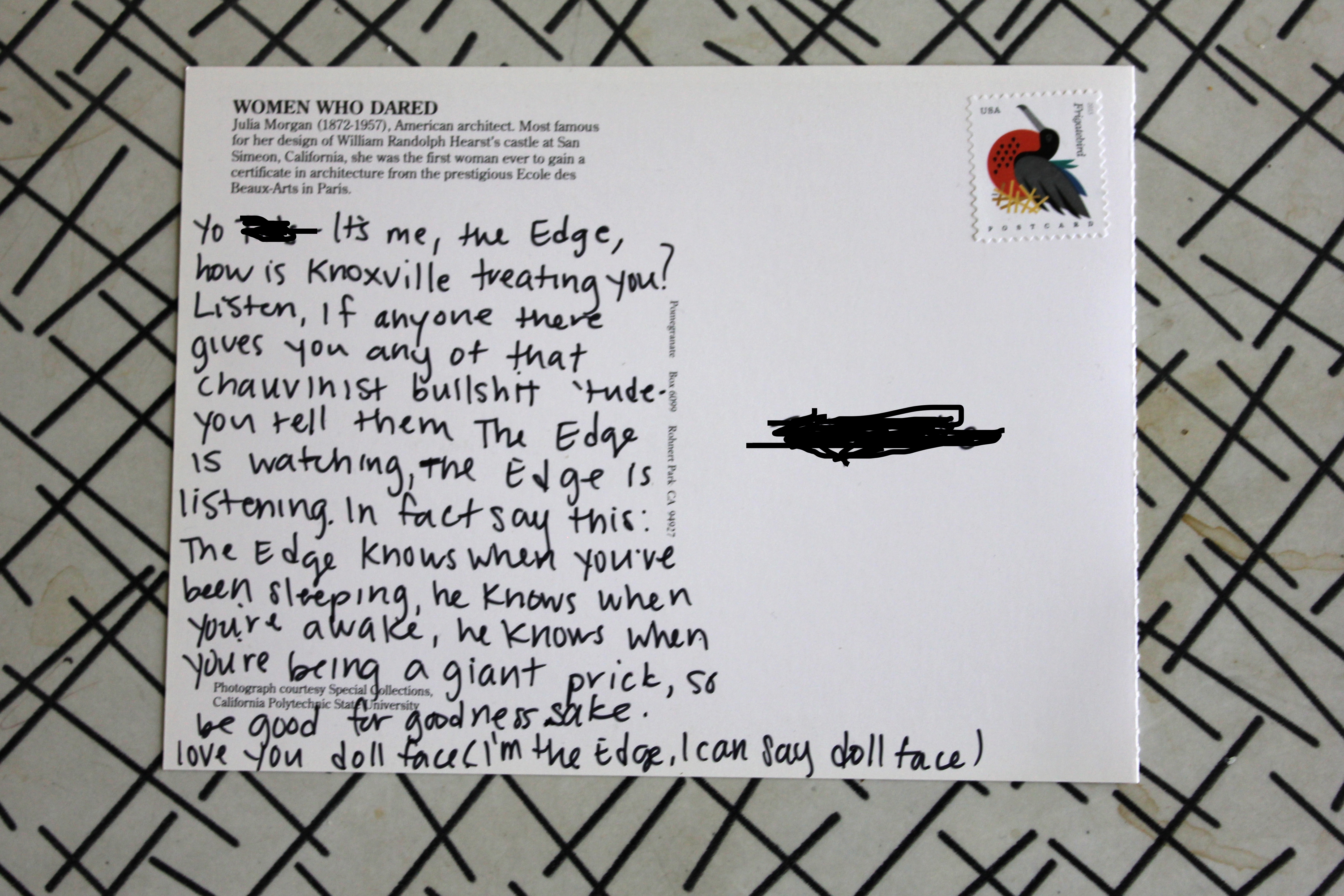 Postcards, from The Edge June 6, 2017March 22, 2020 Posted in Uncategorized postcards from an artist pretending to be The Edge click here to get on the postcard list Share this: Share on Facebook (Opens in new window) Facebook Like Loading... Published by amy View all posts by amy